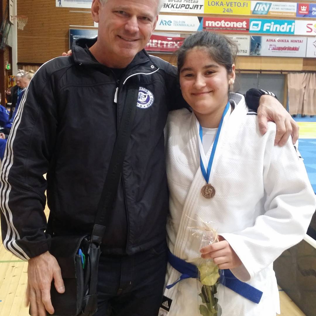 Kuvassa Lotta Marttila ja valmentaja Vladimir Oganyan.